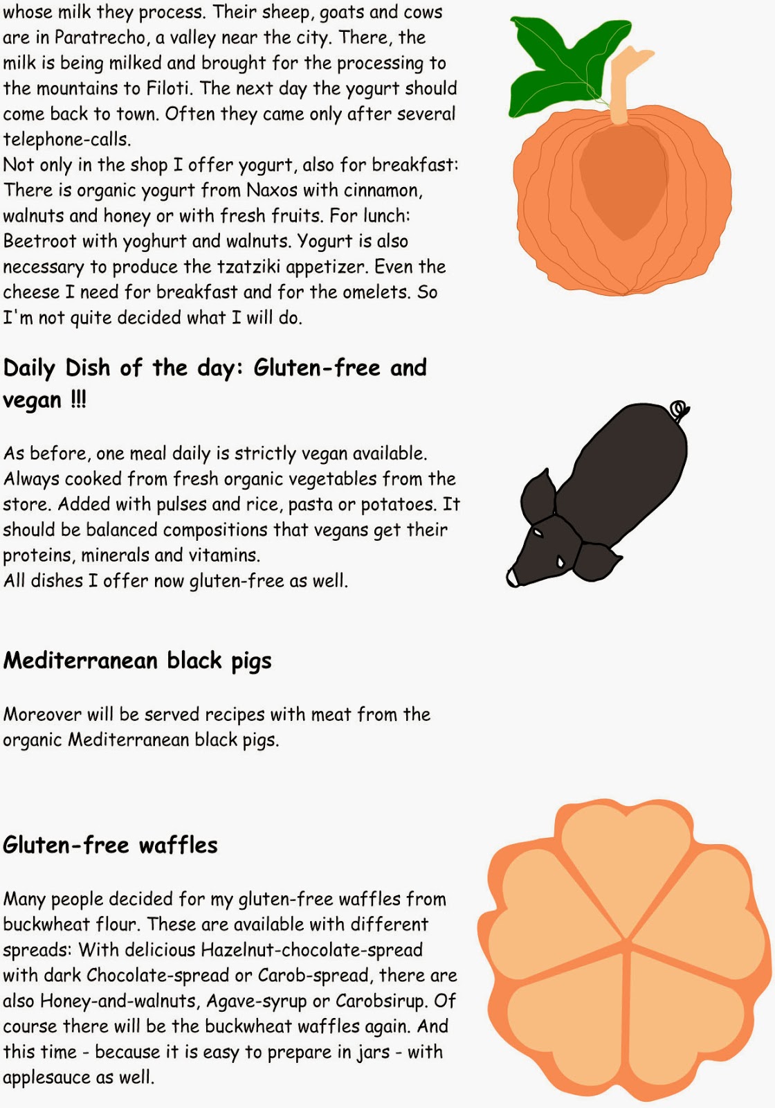 For the morning I wished someone to wash the dishes, for the evening I wished an "Organic cook" and a "Good cake baker" for the afternoon.